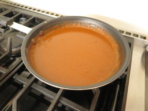 - Reduce heat to low and let simmer until sauce thickens, stirring occasionally. Set to the side and let cool.