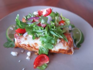 Chorizo, Spinach and Rice Enchiladas with Zingy Salad