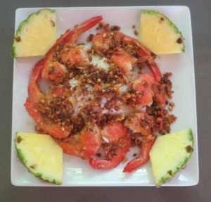 For the other recipe, I was inspired by the food trucks in Hawaii. I figured who would know better what taste the best with this delectable morsel. It’s all about the exceptional flavor of the prawn so I kept it simple as well.
