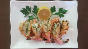 Its features are a little different from the shrimp we are custom to. Its body is longer and narrower. It has a brilliant blue color and its taste is unlike any shrimp you have ever tasted. It’s sweet and succulent, similar in flavor to lobster. They say it’s the sweetest prawn on the market (that means the sweetest shrimp too). What else is unique to this very pretty prawn? It’s born in fresh river waters. The eggs wash out to sea. The tiny little prawns live out to sea, molting 20-30 times. Before its last molting it finds its way to a fresh water stream were it will live out its adult life.