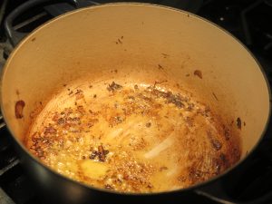 - With ½ cup wine, deglaze the pan, scraping up the brown bits from the bottom of the pan.
