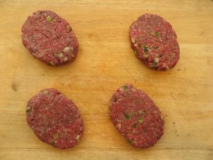 - Form into 4 oblong balls. Flatten to ½ inch thick. Make sure the sides of your patties are tight. Set to the side on a baking sheet.